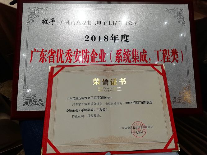 經(jīng)協(xié)會秘書初審,第四屆廣東智慧安防專家?guī)旌蜻x專家投票,專家評審會評定,廣州市高安電氣電子工程有限公司等共31家企業(yè)榮獲“2018年度廣東省優(yōu)秀安防企業(yè)(系統(tǒng)集成,工程類)”稱號,我司倫燕寬董事長出席表彰大會并接受頒獎。